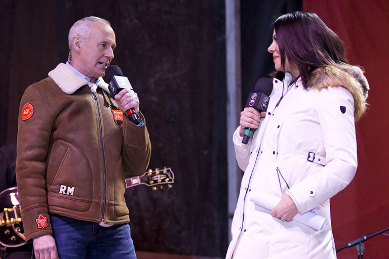 Hosts Ron Maclean and Tara Slone took to the stage to cap off a weekend of hockey fun prior to the national broadcast of the Winnipeg Jets and Carolina Hurricanes game streamed live from Downtown Markham.